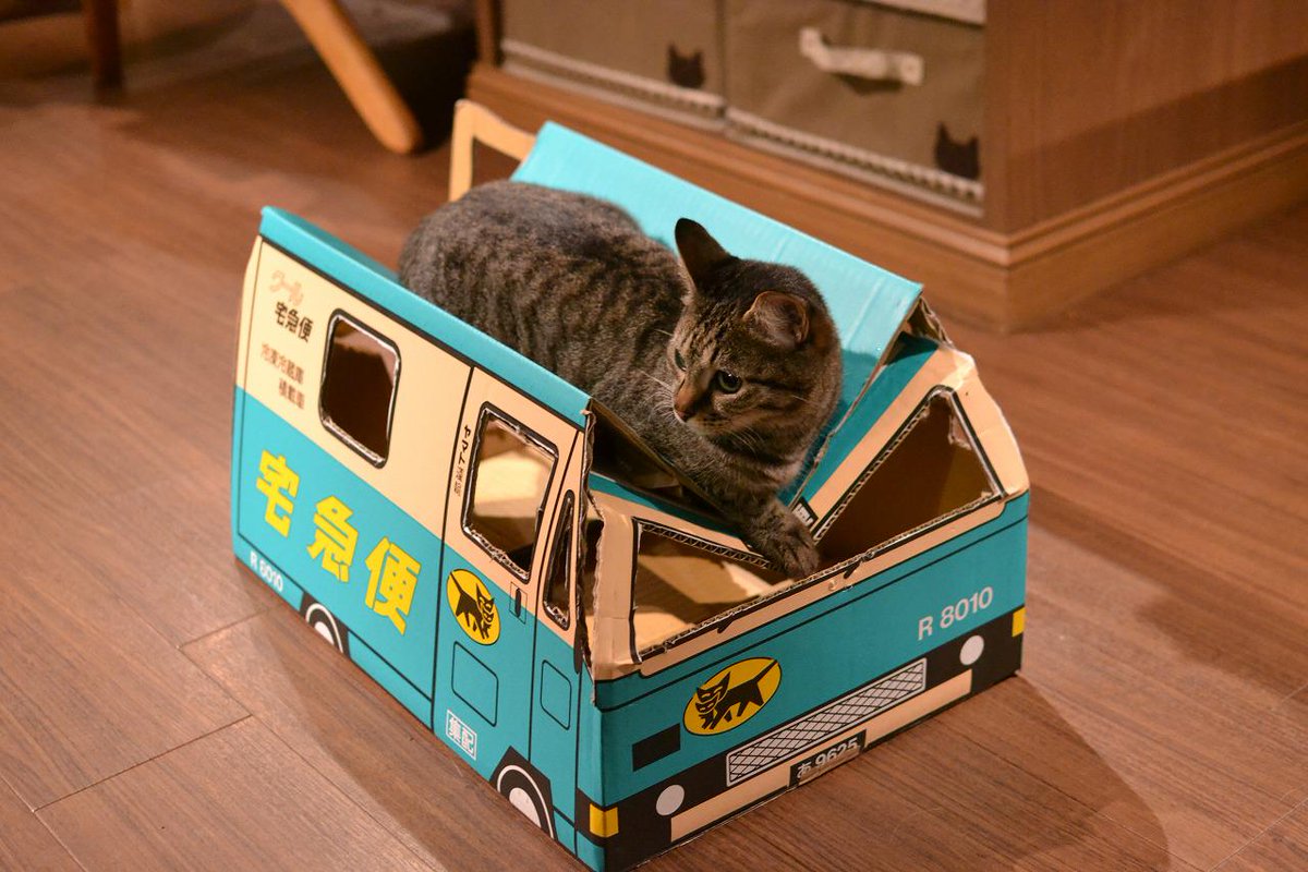 段ボールの窓を、くり抜いてみたところ。 子猫組に大好評です! 『猫が喜ぶミニクロネコヤマトを、作るはずが』 黒猫子猫の玄乃が、乗車すると。 リアルクロネコ29/07/ · 白のネコ耳BOXは21年3月まで期間限定で販売する。 2種類のネコ耳BOX 2種類のネコ耳BOXを組み立てて横に並べると、猫のしっぽを描いた部分がつながり、ハートマークになる。クロネコヤマトのトラック段ボールを組み立ててたら傍によってきて完成を心待ちにする猫さんが尊い→完成したら飛び込んでてさらに尊い Togetter しそちゃんちの🐈 @tu_mi_re_cat わあいちょっとバズってる! 茶トラ男子が「わさんぼん」 キジ白女子が
